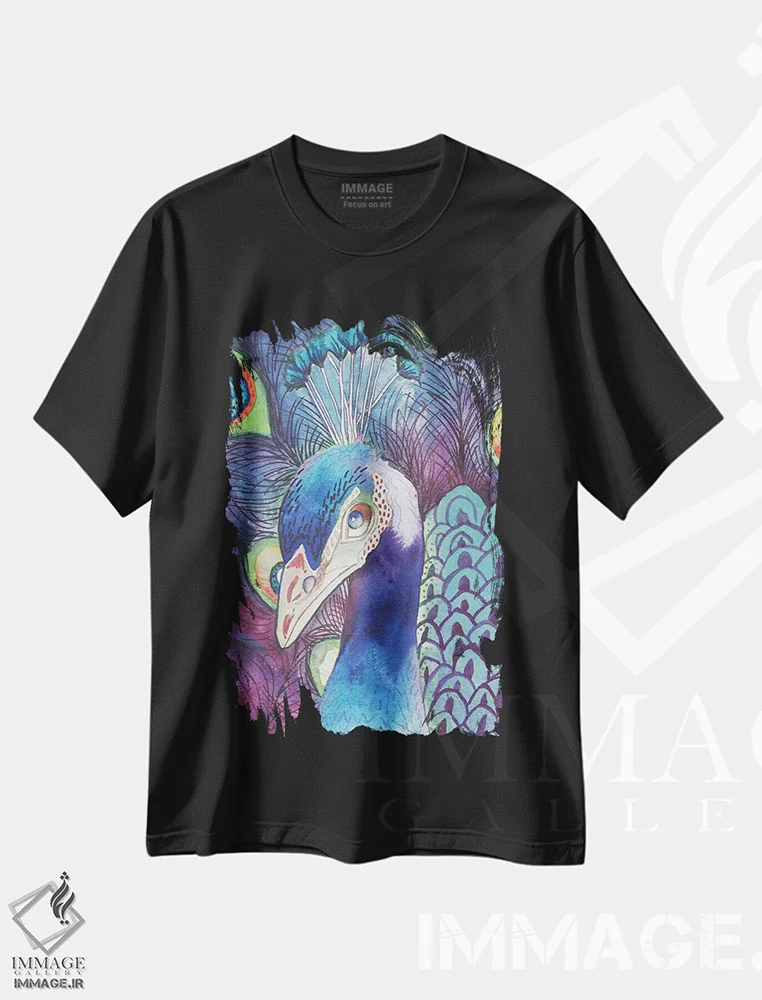 تیشرت مشکی طرح دار طاووس پنهان، مدیوم اثر الیزابت مدلی | فروشگاه ایماژ تیشرت طرح دار طاووس پنهان اثر الیزابت مدلی