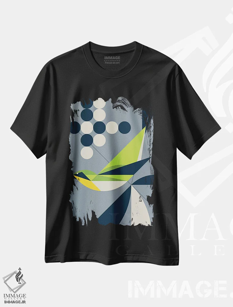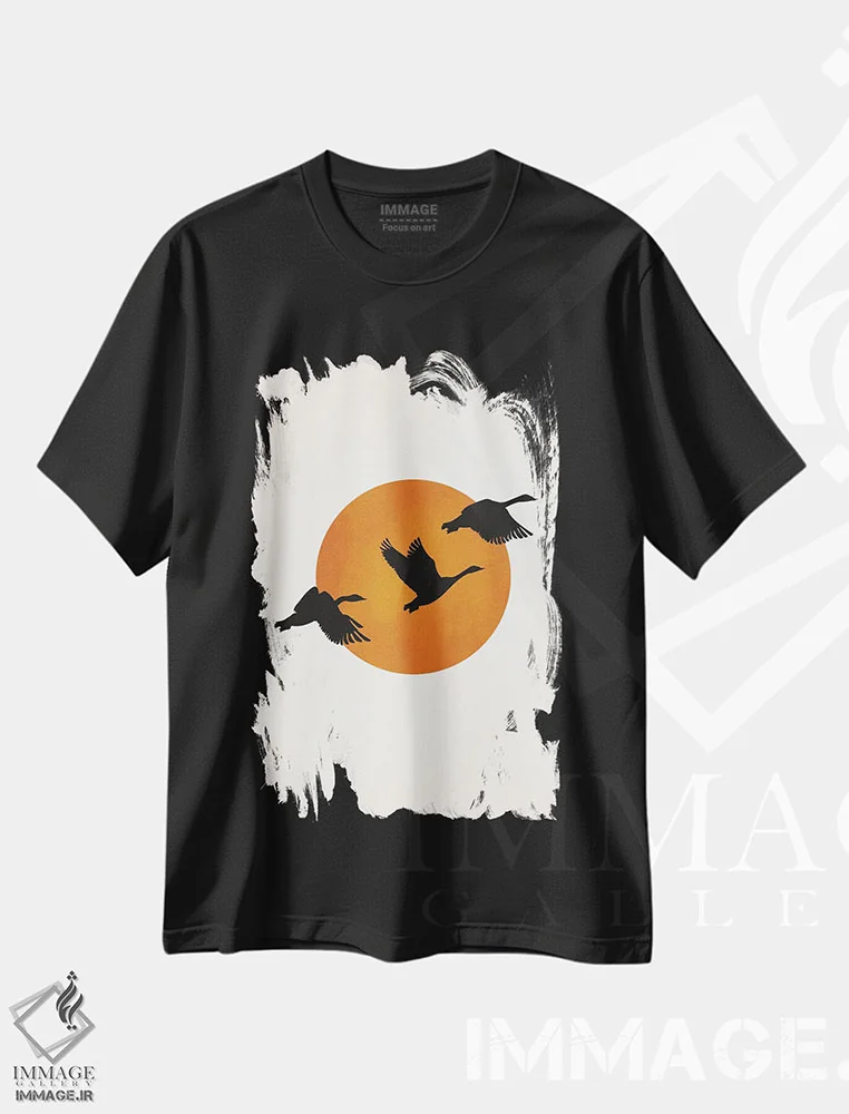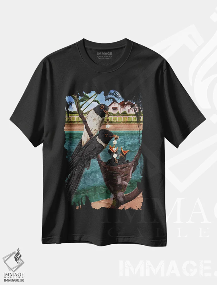 تیشرت مشکی طرح دار پرستو، هنر دیجیتال اثر کلر وست وود | فروشگاه ایماژ تیشرت طرح دار پرستو اثر کلر وست وود