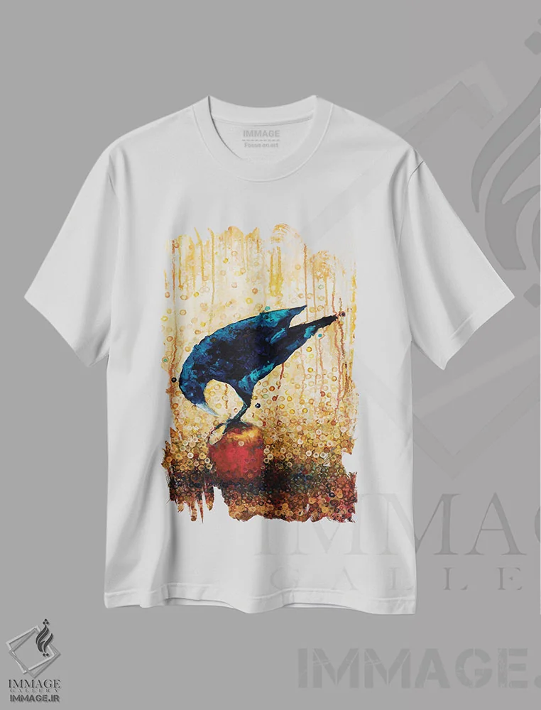 تیشرت مشکی طرح دار پرنده سیاه، دکور معاصر اثر کارن سیکیه | فروشگاه ایماژ تیشرت طرح دار پرنده سیاه اثر کارن سیکیه