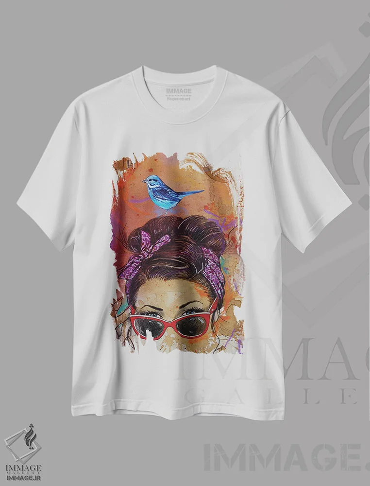 تیشرت سفید طرح دار پرنده جی آبی، تزئینی اثر کورنل ولاد | فروشگاه ایماژ تیشرت طرح دار پرنده جی آبی اثر کورنل ولاد