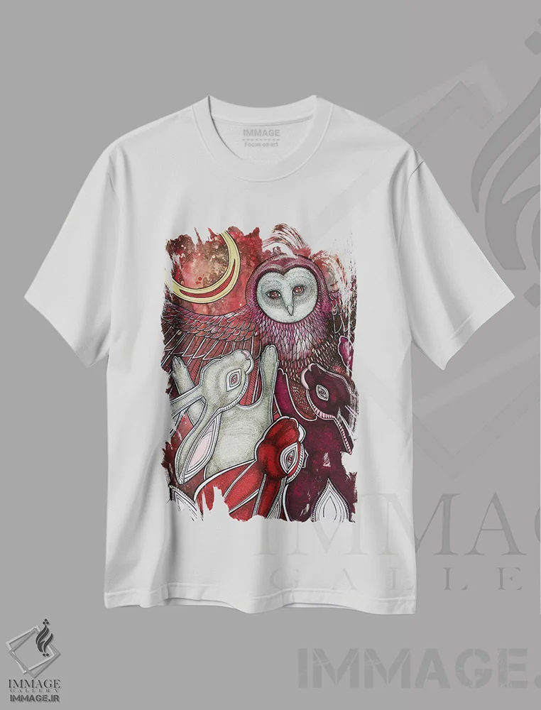 تیشرت سفید طرح دار ماه شاهین، هنر دیجیتال اثر دیوید لوبلاو | فروشگاه ایماژ تیشرت طرح دار ماه شاهین اثر دیوید لوبلاو