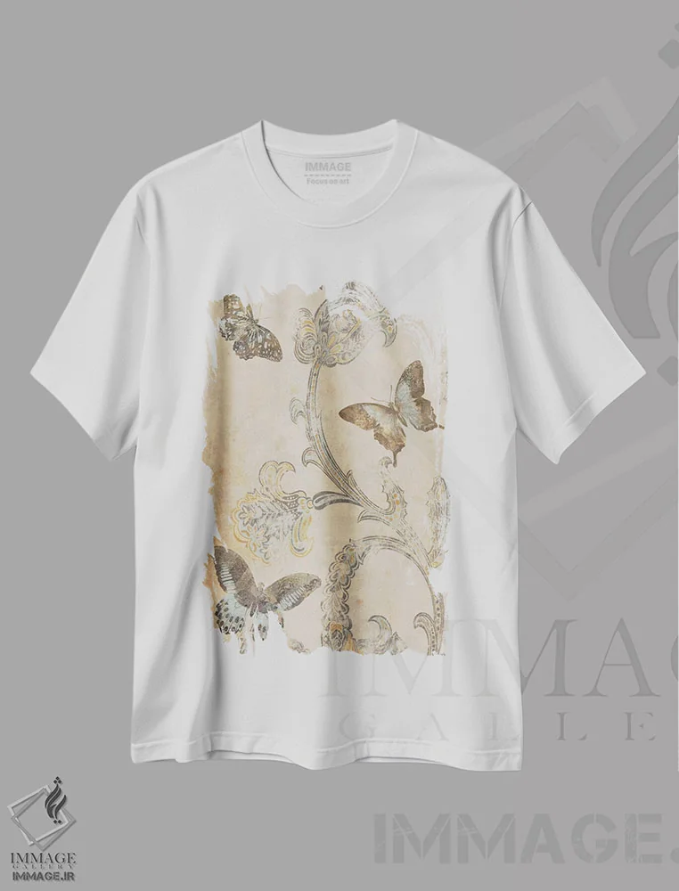 تیشرت سفید طرح دار پروانه های شهریار، مدیوم اثر گرگ جوردانو | فروشگاه ایماژ تیشرت طرح دار پروانه های شهریار اثر گرگ جوردانو