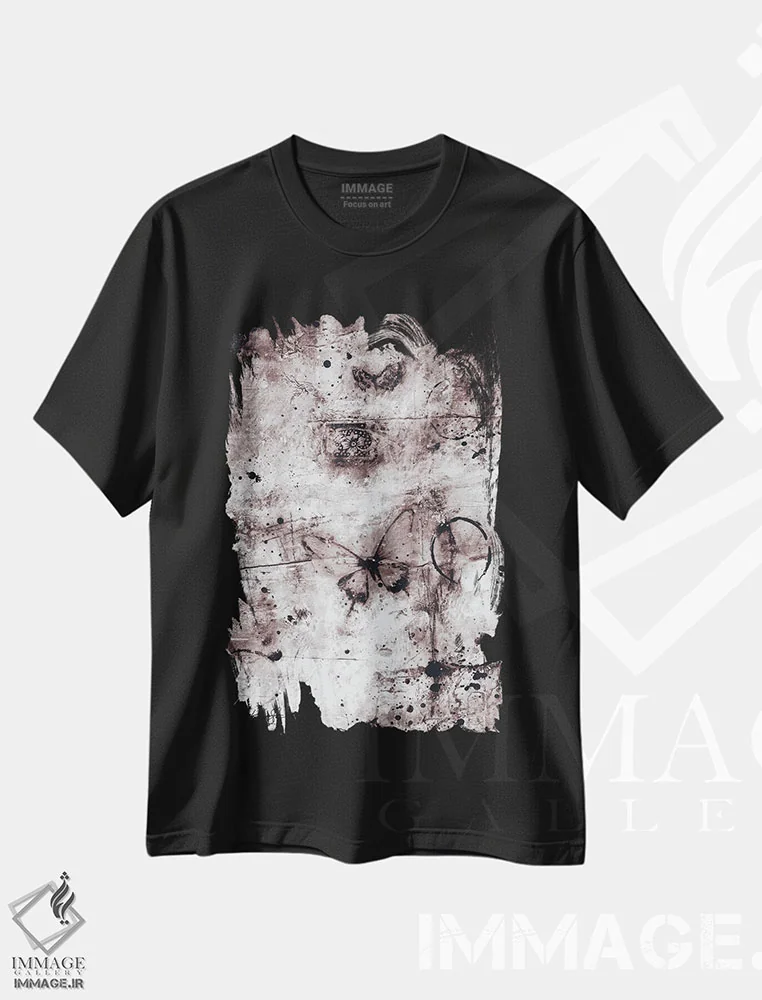 تیشرت مشکی طرح دار سه لتی پروانه III، هنر دیجیتال اثر ۳۳ استخوان شکسته | فروشگاه ایماژ تیشرت طرح دار سه لتی پروانه III اثر استخوان شکسته