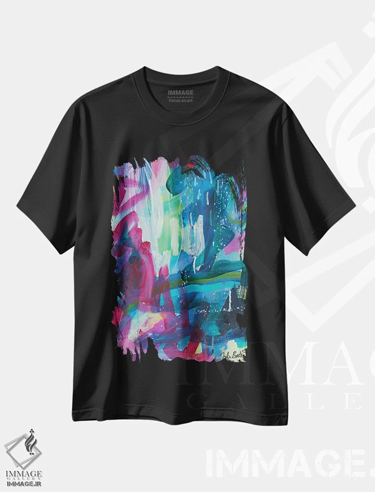 تیشرت مشکی طرح دار شناور شدن، مدیوم اثر لورا کرتین | فروشگاه ایماژ تیشرت طرح دار شناور شدن اثر لورا کرتین