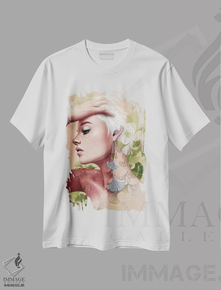 تیشرت سفید طرح دار – تیشرت طبیعت ,درخت جینکو اثر میستگری فروشگاه ایماژ تیشرت طرح طبیعت ,درخت جینکو اثر میستگری