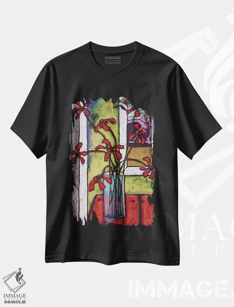 تیشرت مشکی طرح دار شقایق ها، تزئینی اثر دیویدای هینْدز | فروشگاه ایماژ تیشرت طرح دار شقایق ها اثر دیویدای هینْدز