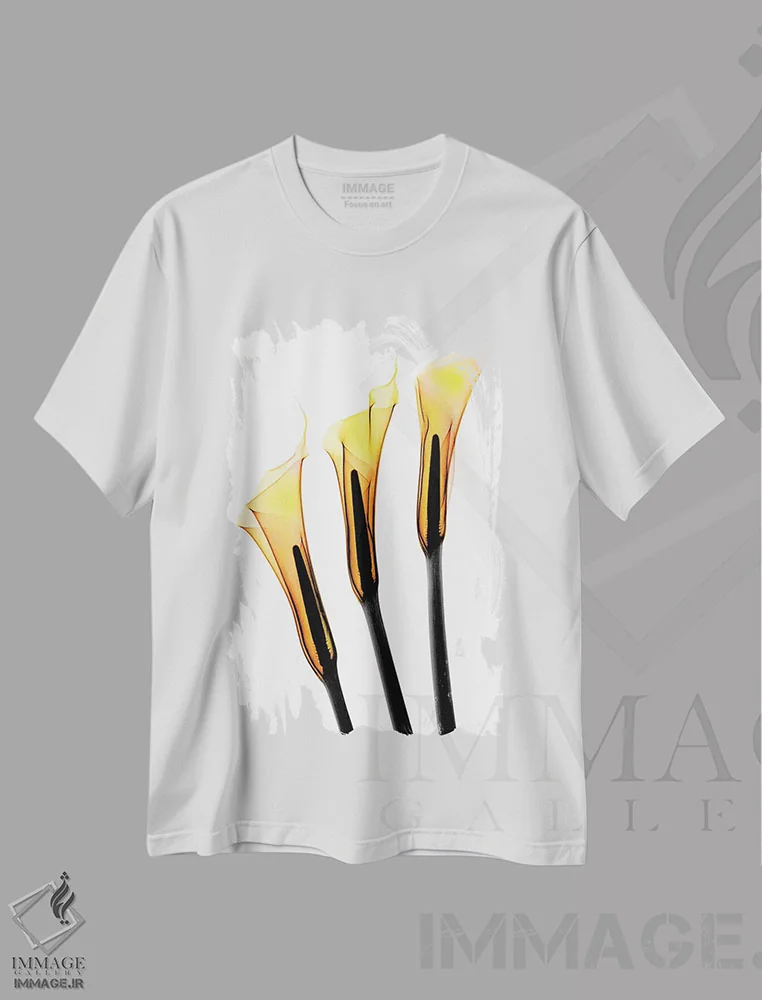 تیشرت سفید طرح دار سه تایی از گل های لاله، تزئینی اثر دیویدای هینْدز | فروشگاه ایماژ تیشرت طرح دار سه تایی از گل های لاله اثر دیویدای هینْدز