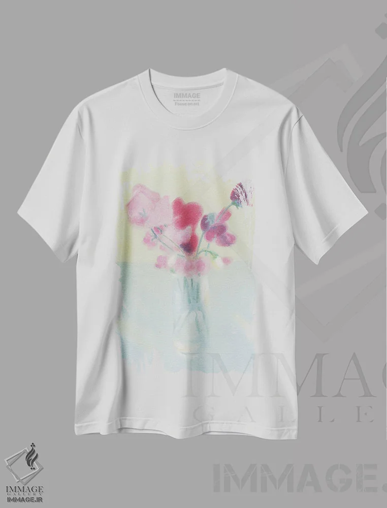 تیشرت سفید طرح دار گل ها در بطری، تزئینی اثر سباستین هیلگتاگ | فروشگاه ایماژ تیشرت طرح دار گل ها در بطری اثر سباستین هیلگتاگ