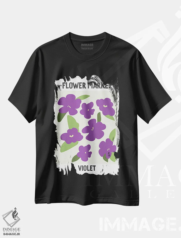 تیشرت مشکی طرح دار – تیشرت گلی ,پوستر بازار گل بنفشه اثر مامبو آرت استودیو فروشگاه ایماژ تیشرت طرح گلی ,پوستر بازار گل بنفشه اثر مامبو آرت استودیو