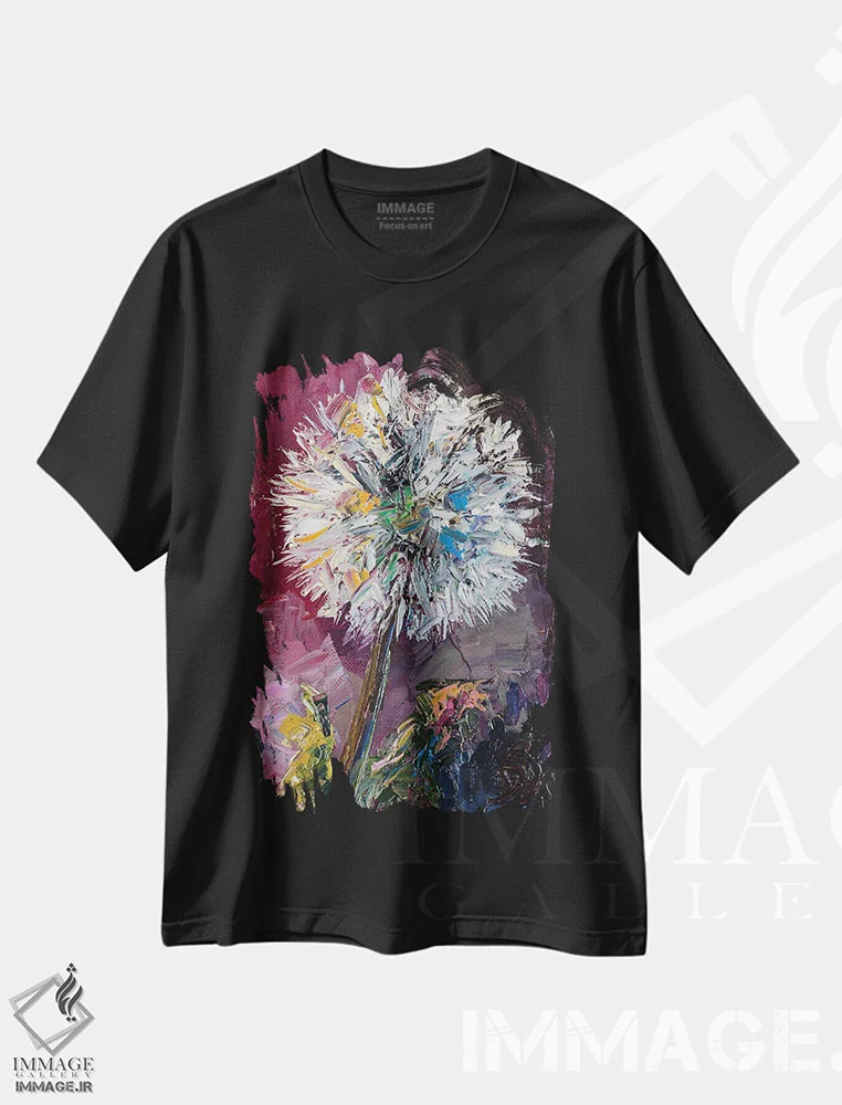 تیشرت مشکی طرح دار قاصدک، دکور معاصر اثر دانا سورکینا | فروشگاه ایماژ تیشرت طرح دار قاصدک اثر دانا سورکینا