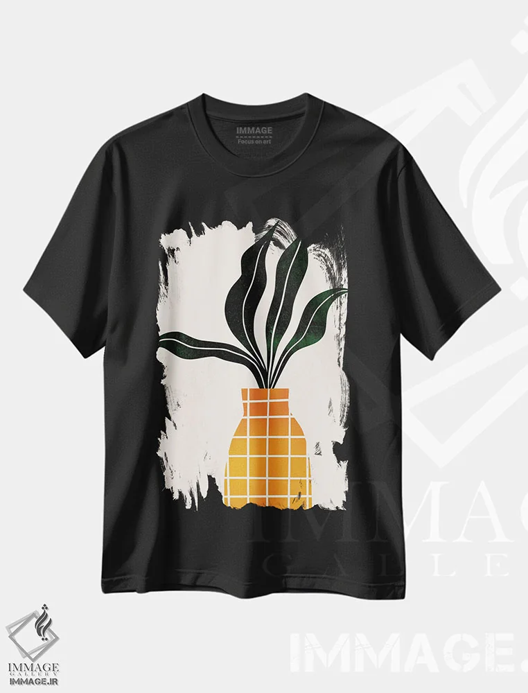 تیشرت مشکی طرح دار پیتر، گیاه، تزئینی اثر کوبیستیکا | فروشگاه ایماژ تیشرت طرح دار پیتر، گیاه اثر کوبیستیکا