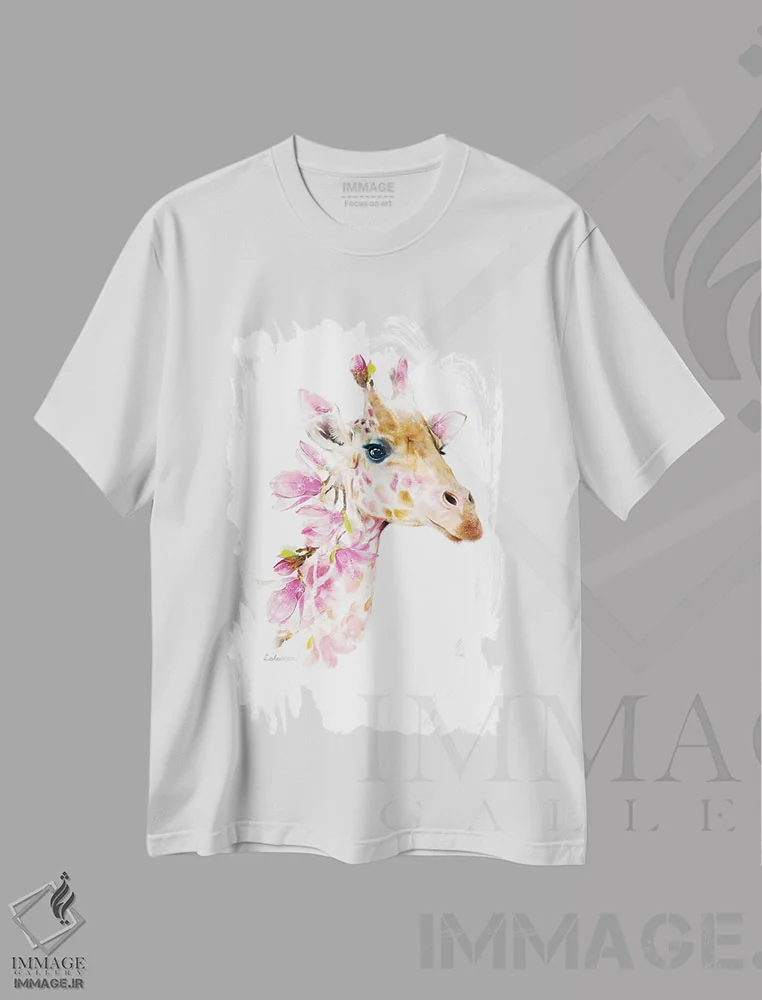 تیشرت سفید طرح دار زرافه گیاهی حیات وحش، هنر دیجیتال اثر لولا دیزاین | فروشگاه ایماژ تیشرت طرح دار زرافه گیاهی حیات وحش اثر لولا دیزاین