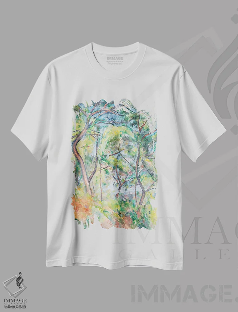 تیشرت سفید طرح دار c.1894,زیر درختان، حدود ۱۸۹۴، هنر فاخر کلاسیک اثر پل سزان | فروشگاه ایماژ تیشرت طرح دار c.زیر درختان، حدود اثر پل سزان
