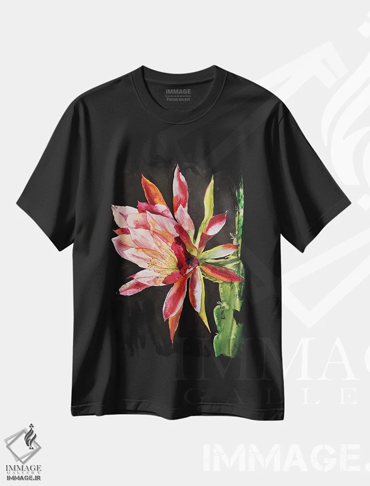 تیشرت مشکی طرح دار گل کاکتوس، تزئینی اثر دلنارا ال | فروشگاه ایماژ تیشرت طرح دار گل کاکتوس اثر دلنارا ال