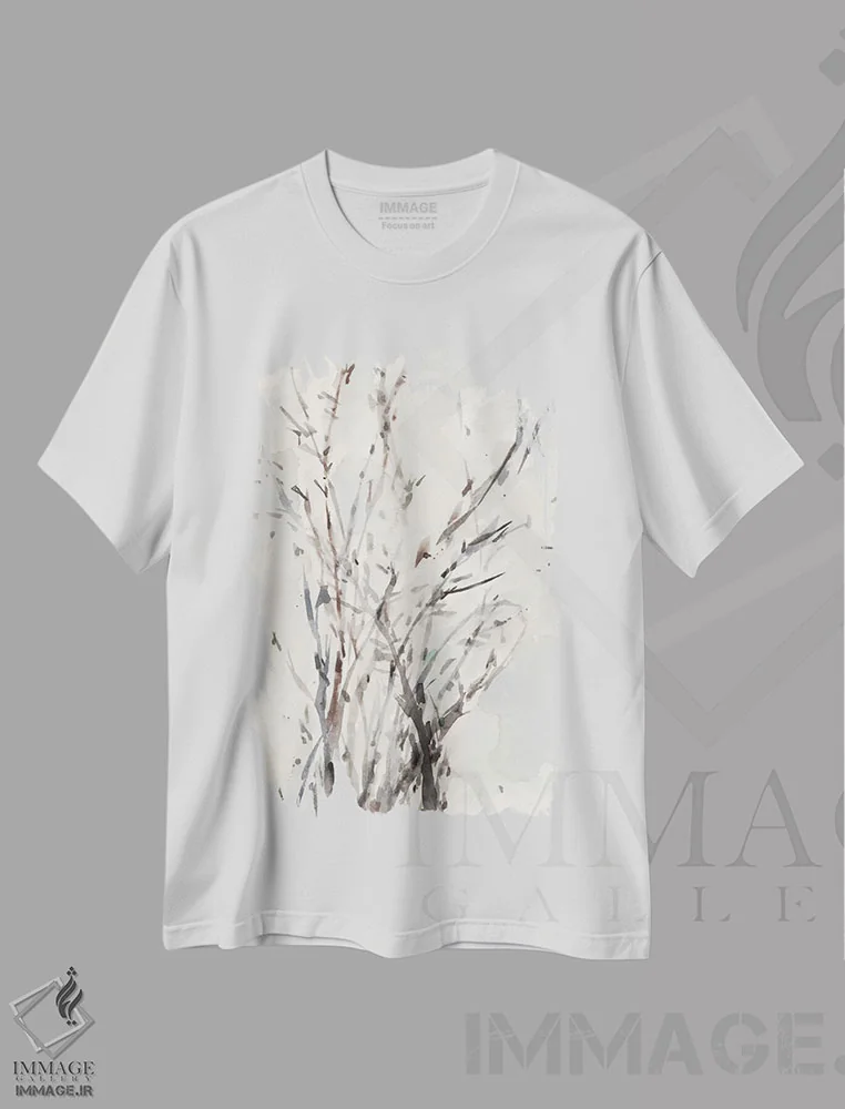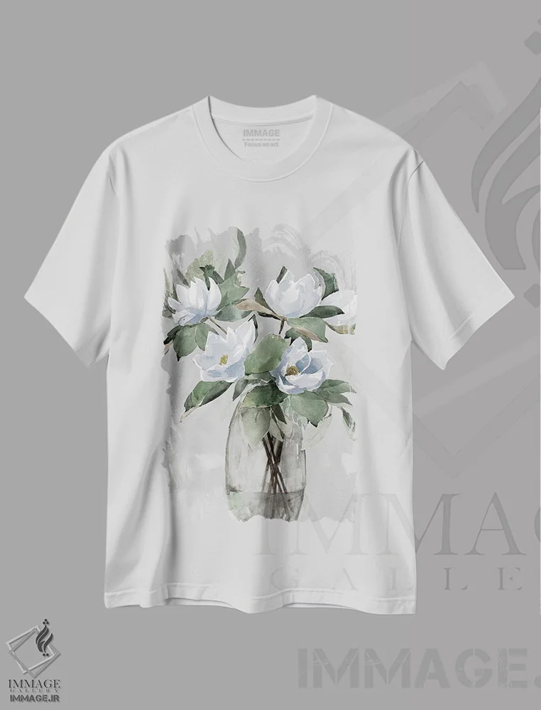 تیشرت سفید طرح دار "شکوفه سربی"، دکوراسیون جایگزین اثر فرانک موس | فروشگاه ایماژ تیشرت طرح دار "شکوفه سربی" اثر فرانک موس