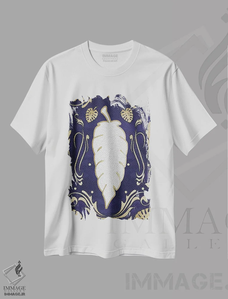 تیشرت سفید طرح دار – تیشرت طبیعت ,برگ های استوایی نیلی I اثر مگان میگر فروشگاه ایماژ تیشرت طرح طبیعت ,برگ های استوایی نیلی I اثر مگان میگر