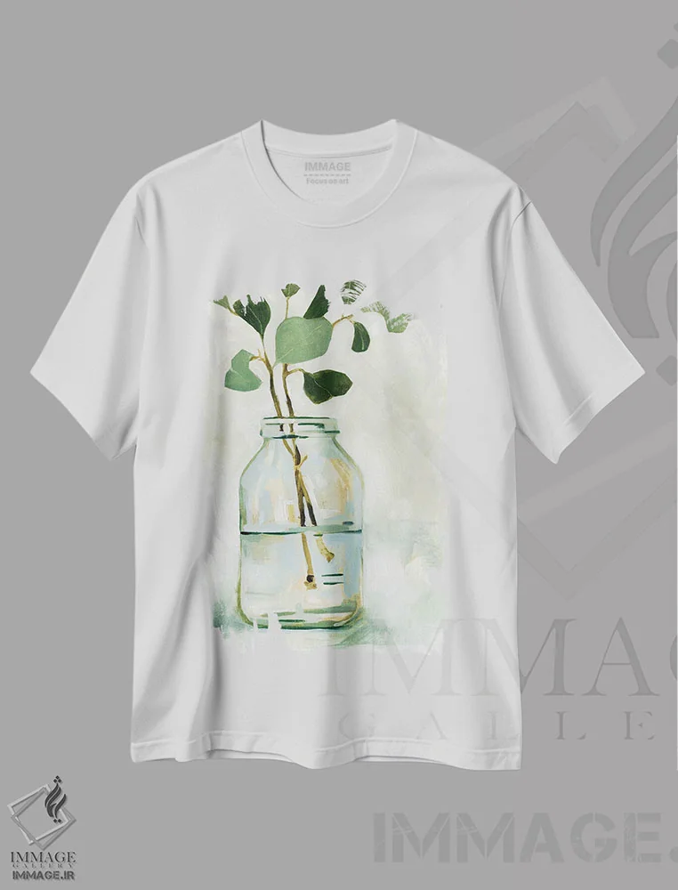 تیشرت سفید طرح دار طبیعت بی جان شاخه اکالیپتوس ۲، دکور معاصر اثر اما کارولین | فروشگاه ایماژ تیشرت طرح دار طبیعت بی جان شاخه اکالیپتوس اثر اما کارولین