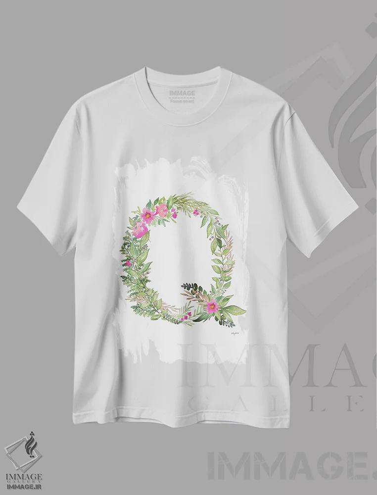تیشرت سفید طرح دار حرف O گیاهی، تزئینی اثر کلسی مک نت | فروشگاه ایماژ تیشرت طرح دار حرف O گیاهی اثر کلسی مک نت