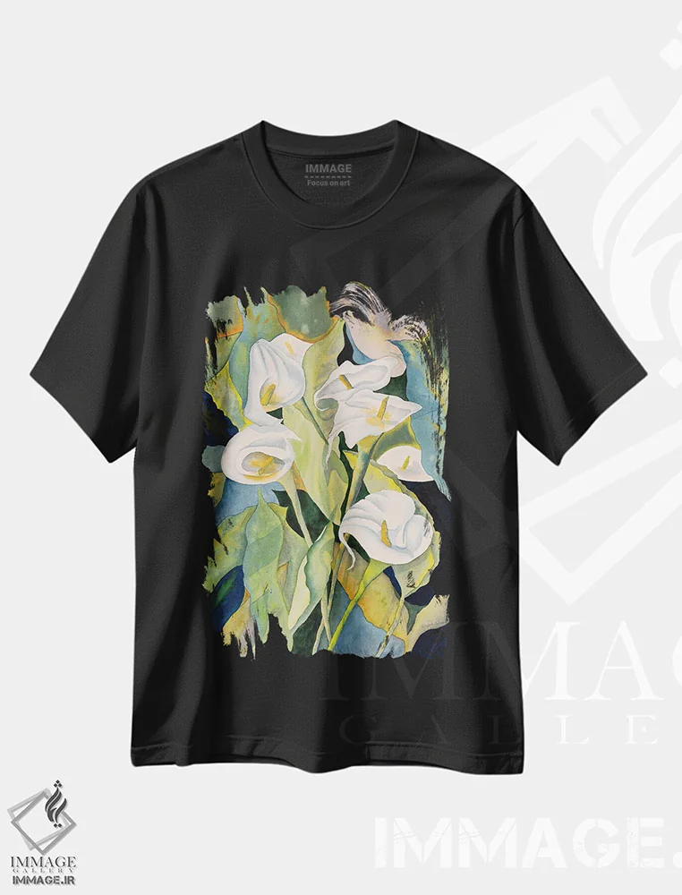 تیشرت مشکی طرح دار کالاها، دکور معاصر اثر لیز کاوینگتون | فروشگاه ایماژ تیشرت طرح دار کالاها اثر لیز کاوینگتون