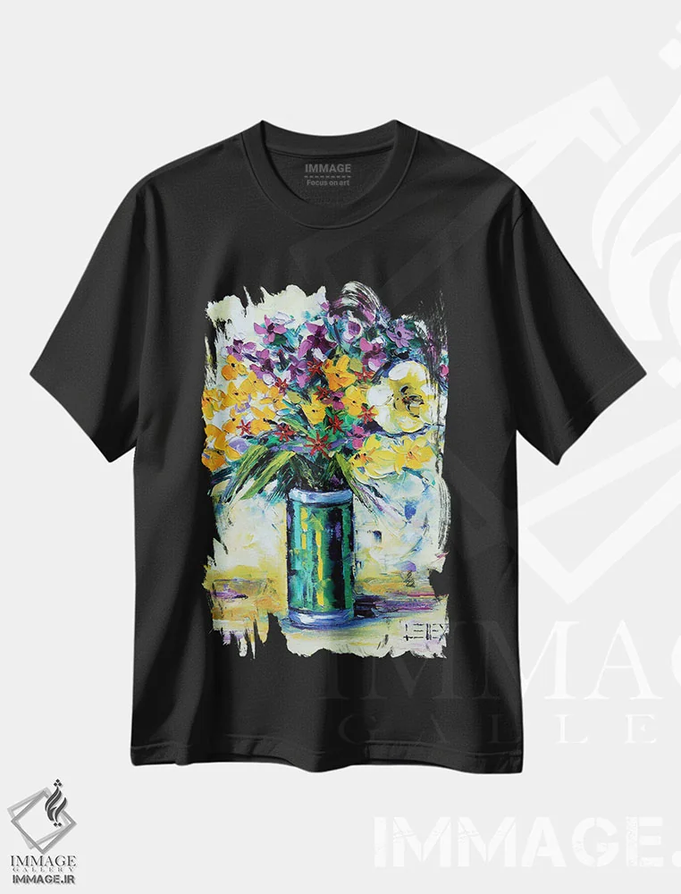 تیشرت مشکی طرح دار دسته گل روز مادر، دکور معاصر اثر لیزا الی | فروشگاه ایماژ تیشرت طرح دار دسته گل روز مادر اثر لیزا الی