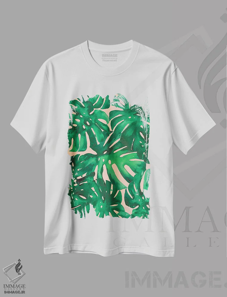 تیشرت سفید طرح دار – تیشرت گیاهی ,برگ های مانسترا اثر کریستین لیندستروم فروشگاه ایماژ تیشرت طرح گیاهی ,برگ های مانسترا اثر کریستین لیندستروم