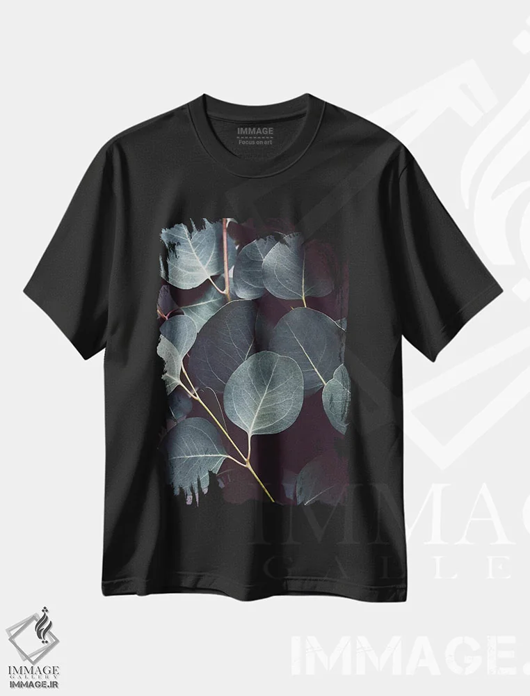 تیشرت مشکی طرح دار – تیشرت طبیعت ,برگ های اکالیپتوس اثر لوپن گرین فروشگاه ایماژ تیشرت طرح طبیعت ,برگ های اکالیپتوس اثر لوپن گرین